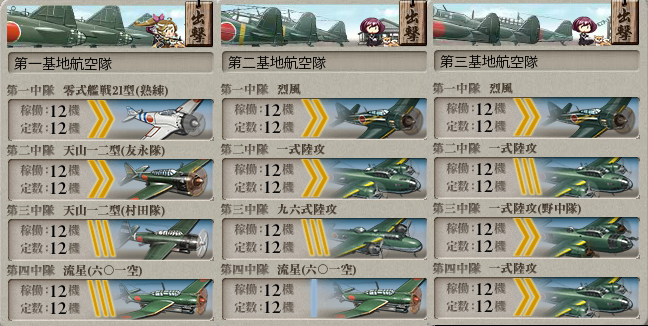 第三:烈風、一式陸攻、一式野中、一式陸攻