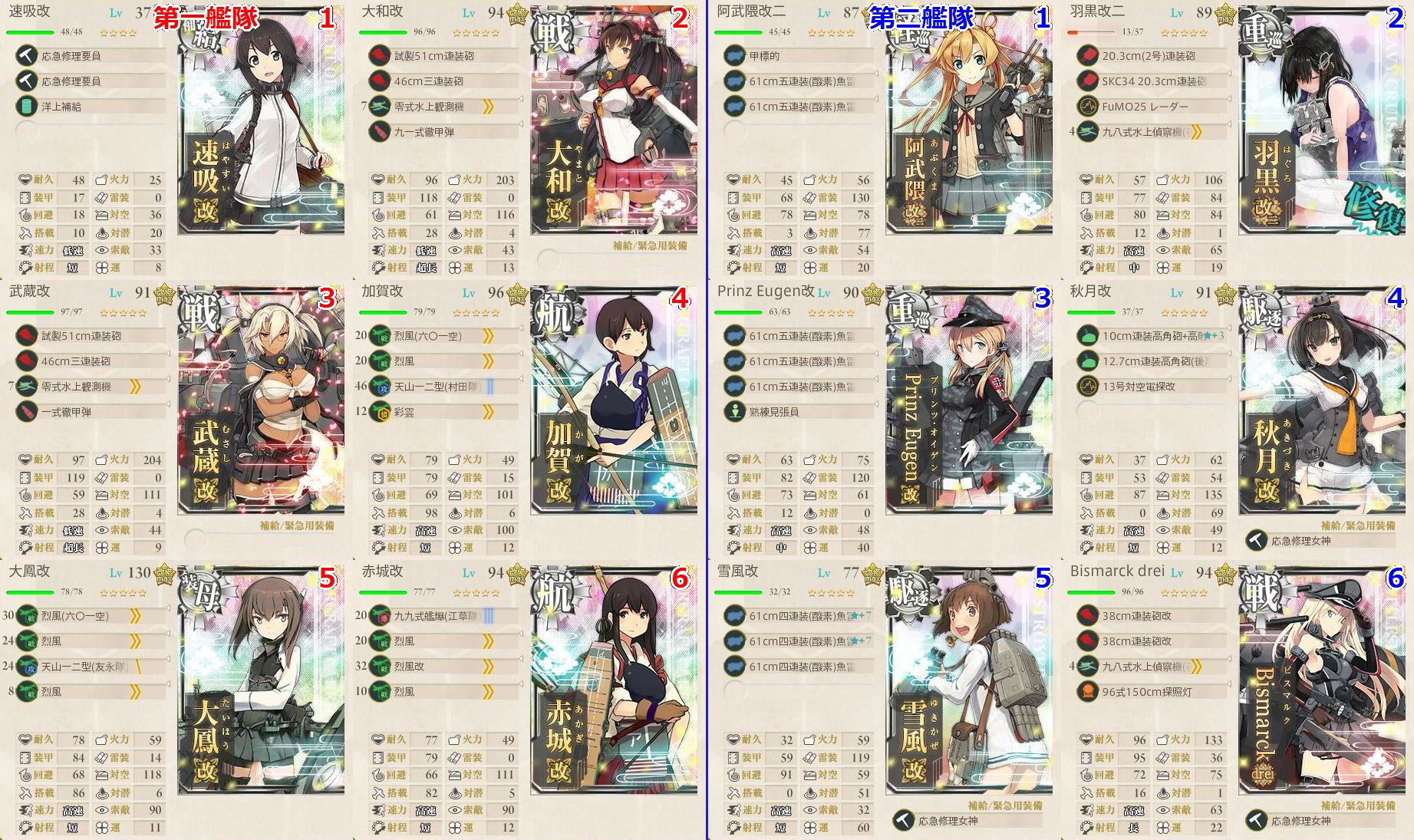 旗艦/速吸:補給缶、ダメコン*2←1-1で疲労したままで組み込む
