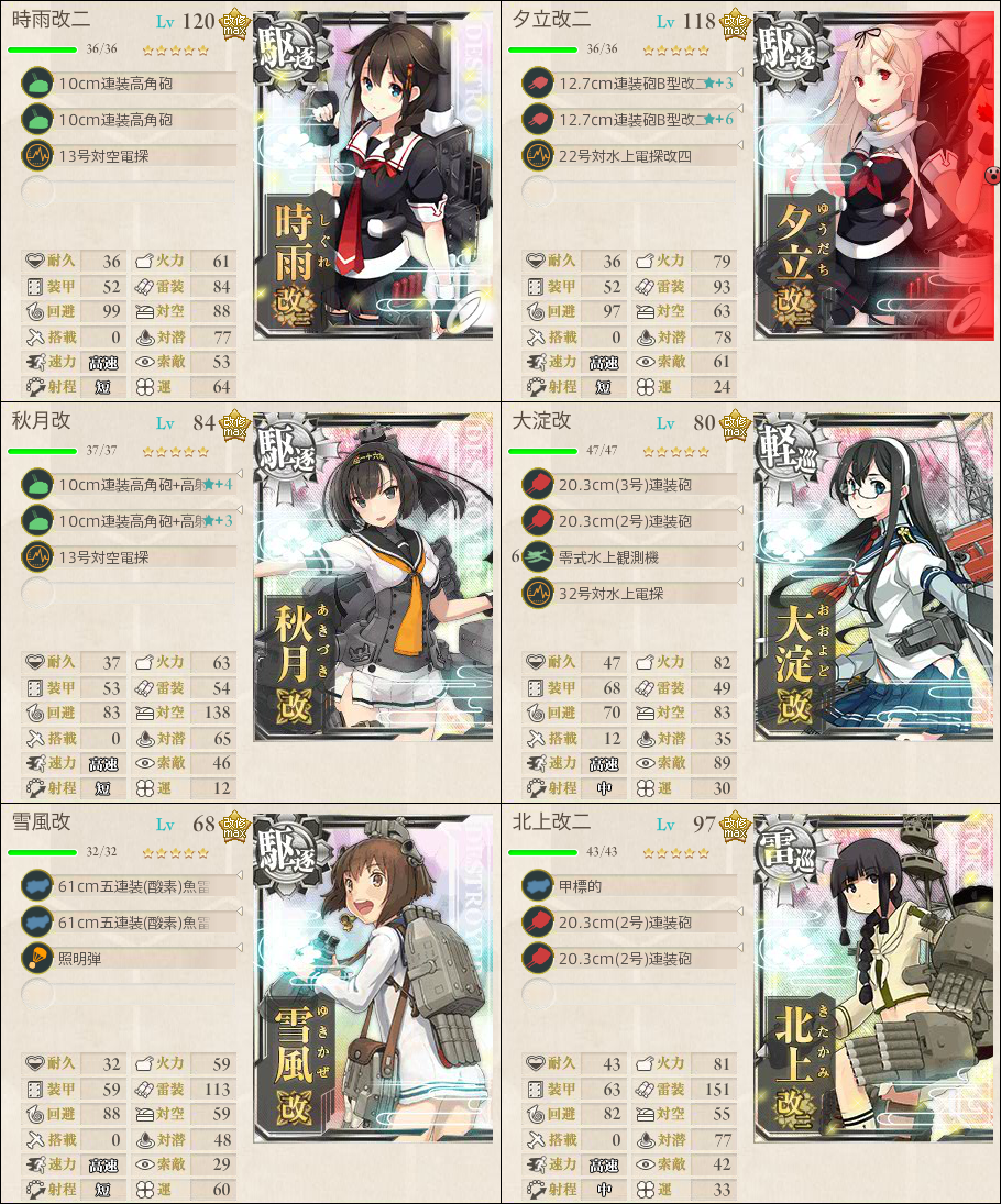 19、RJ、那智、木曾、川内、最上、RJ、卯月
