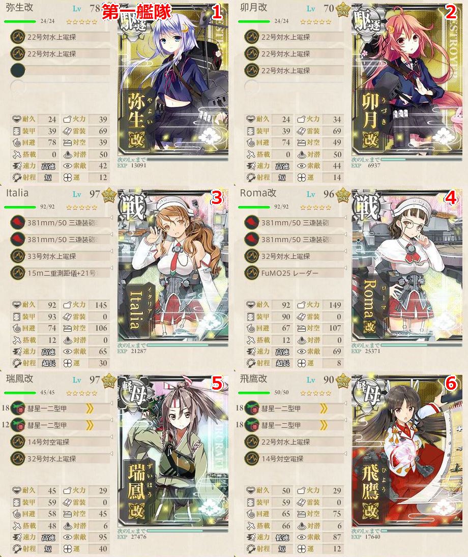 ※道中支援のみ(駆逐2、軽空2、戦艦2)