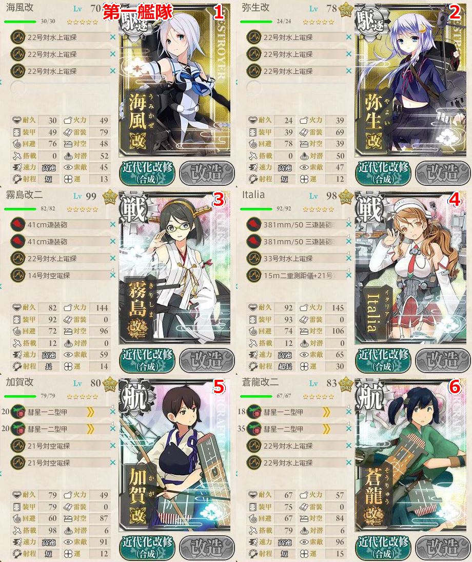 ※E5で正規空母使うので制空権高い奴は残すこと