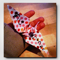 並んでるときに、ちょうかいのブースでうちわと折鶴いただいた。
