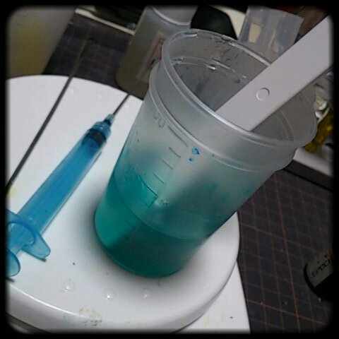 主剤10に対して硬化剤5、つまり2:1の割合で調合。