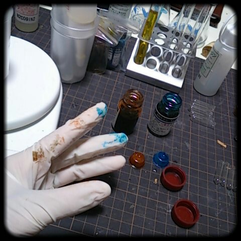 おしっ!爆発はしなかったものの、やはり手袋は染まった。