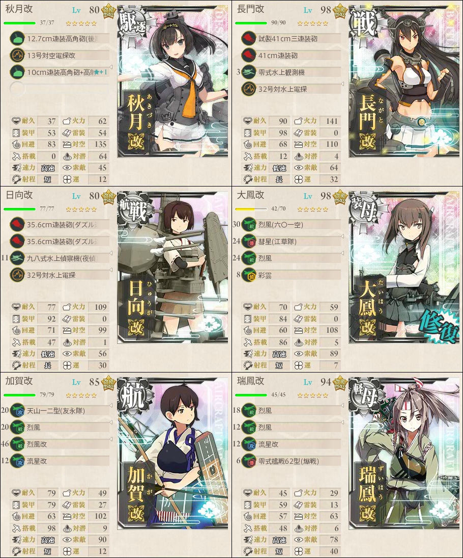 浜風・飛鷹(A)・伊勢・球磨・北上(A)・長良(A)・利根(A)