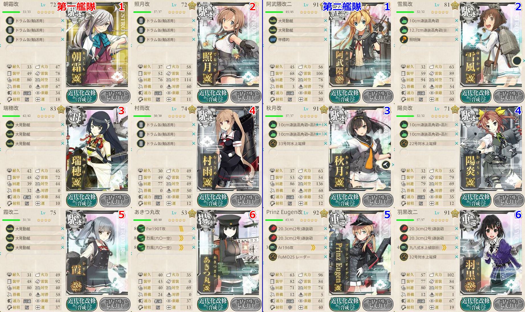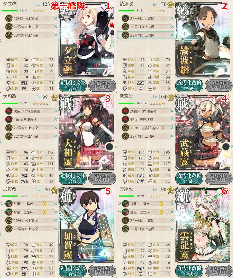 第一艦隊はレベルひくい駆逐でOK。第二艦隊に主力をおくこと。