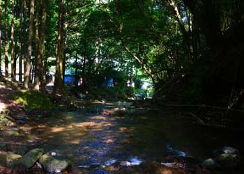 おじさんの車に乗って走ること10分!渓流がすぐ真横にあるBBQ場に到着。